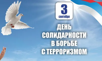День солидарности в борьбе с терроризмом ежегодно отмечается в России 3 сентября. Памятный день был установлен федеральным законом "О внесении изменений в Федеральный закон "О днях воинской славы (победных днях) России" от 21 июля 2005 года. Этот день приурочен к трагическим событиям, произошедшим 1-3 сентября 2004 года в городе Беслане, когда в результате беспрецедентного по своей жестокости террористического акта погибли более 300 человек, в основном женщины и дети. День солидарности в борьбе с терроризмом символизирует единение государства и общества в борьбе с таким страшным явлением, как терроризм. В этот день Россия отдает дань памяти тысячам соотечественников, погибшим от рук террористов в Беслане, в театральном центре на Дубровке, в Буденновске, Первомайском, при взрывах жилых домов в Москве, Буйнакске и Волгодонске, в сотнях других террористических актов.